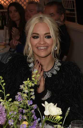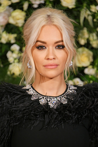 Певица Рита Ора в черном шелковом платье из жоржета и отделкой из перьев из коллекции Michael Kors Collection Осень 2019 года.