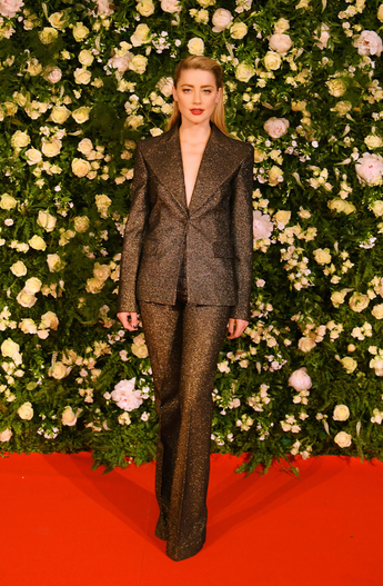 Актриса Эмбер Херд в костюме золотого цвета из коллекции Michael Kors Collection Осень 2019 года.