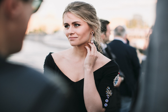 Алина Крюкова - платье Elie Saab, серьги Chopard из коллекции High Jewellery