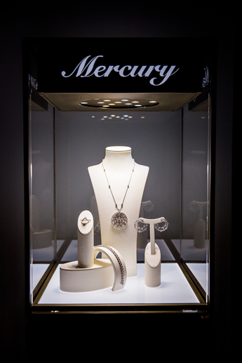 Блеск новогодних игрушек и бенгальских огней приятно разнообразило сияние украшений Mercury, которые были установлены в праздничных витринах.