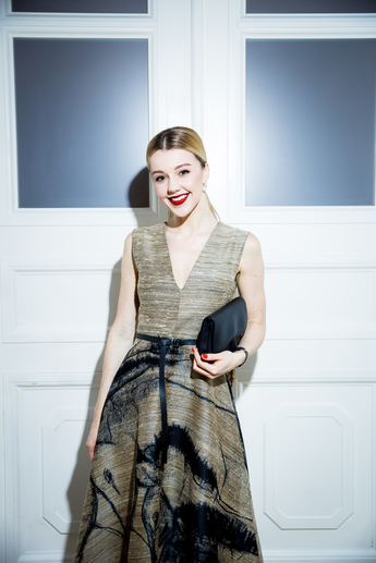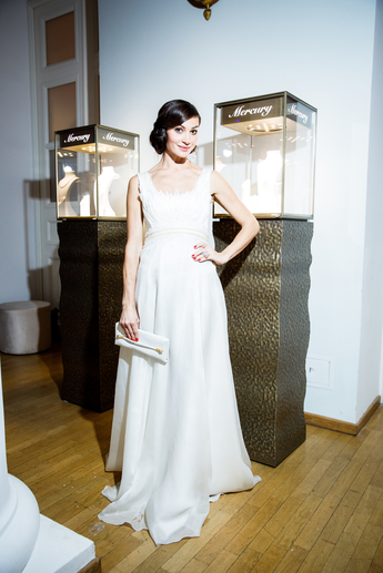 Для вечера Наталья Водянова выбрала серьги Mercury из коллекции Classic (белое золото, бриллианты) и колье из коллекции Flower (белое золото, бриллианты).