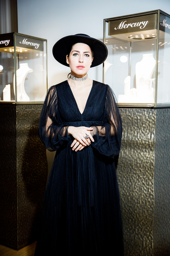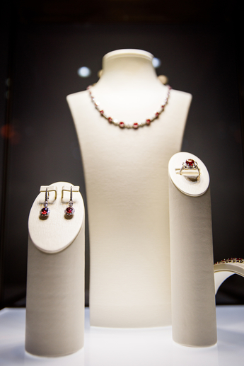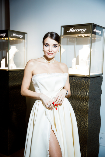 Яна Рудковская выбрала колье и браслеты Mercury из коллекции Color (белое золото, рубины, бриллианты) и браслет из коллекции Classic (белое золото, бриллианты).