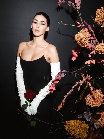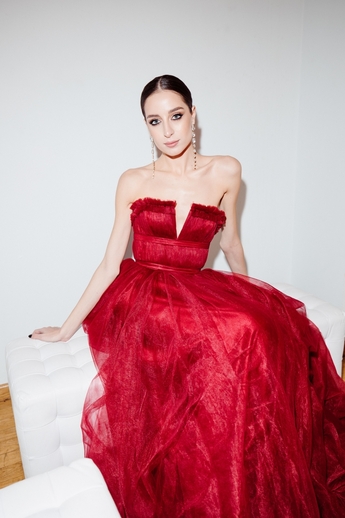 Платье: Edem Couture. Серьги и браслет Mercury из коллекции Classic (белое золото, бриллианты).