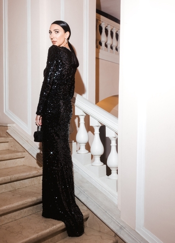 Платье: Dolce & Gabbana Alta Moda. Серьги Mercury из коллекции Classic (белое золото, бриллианты), колье из коллекции Flower (белое золото, бриллианты).