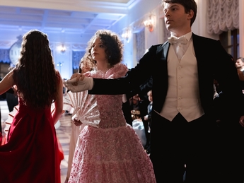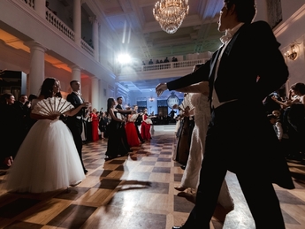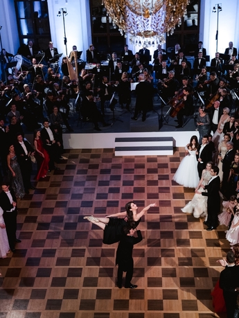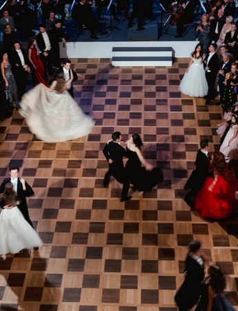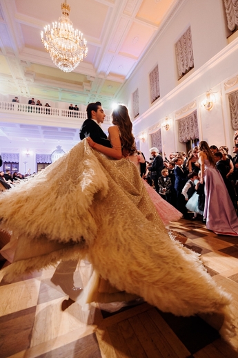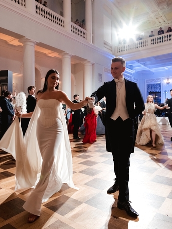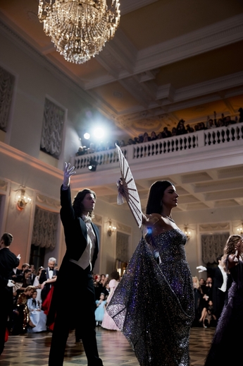 Первым был исполнен Полонез из балета Михаила Фокина «Шопениана». Затем Сати Спивакова представила гостям каждую танцевальную пару. И объявила второй танец — вальс. В этом году на балу прозвучало сочинение народного артиста СССР, здравствующего классика Евгения Доги вальс «Граммофон».