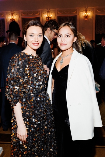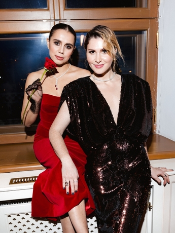 Мария в платье Georges Hobeika Couture. Серьги и браслет Mercury из коллекции Classic (белое и желтое золото, бриллианты). Софья в платье Yanina Couture. Серьги и браслет Mercury из коллекции Classic (белое золото, бриллианты), колье из коллекции Color (белое золото, сапфир, бриллианты).