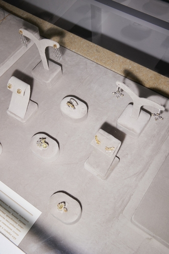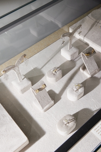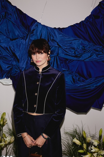 Ювелирные украшения с мягкими, смелыми, изогнутыми линиями, танцующих хороводом изумрудов, цаворитов, сапфиров и бриллиантов, стали арт объектами, находясь внутри экспозиции, на которой были представлены работы художницы Анки Ахалая. Насладившись союзом искусства и ювелирного мастерства, гости проследовали на второй этаж, где состоялось не менее презентабельное продолжение вечера - их ожидал коктейль в честь торжественного открытия. Футуристическая фотозона, сложные световые элементы, декорации из живых цветов, арт закуски - все было отсылкой к представленной ювелирной коллекции.