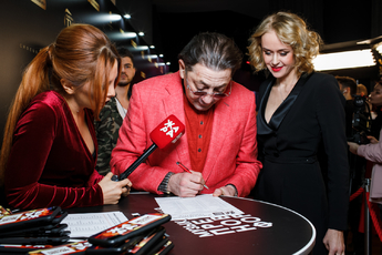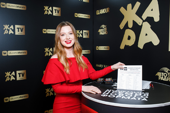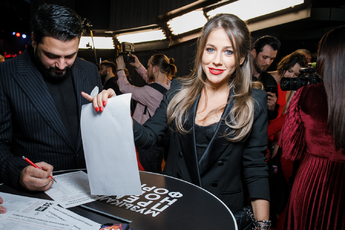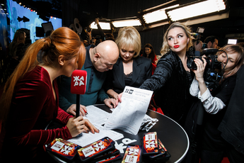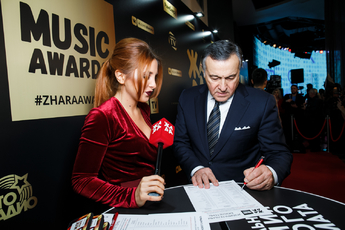 Ведущие телеканала «ЖАРА» встречали звездных гостей на красной ковровой дорожке. Почти все гости соблюли dress code и пришли в красно- черных нарядах.
