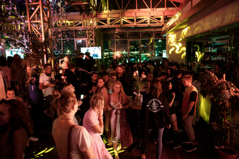 В перерывах между танцами гости с удовольствием делали фото на фоне вечерней Москвы на панорамной веранде ресторана и в двух ярких фото зонах в стиле дресс-кода мероприятия - розовой с неоновыми фламинго и серебристой в оттенках сентябрьской обложки.