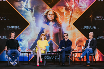 / Фотоколл "Люди Икс.Темный Феникс": Джеймс МакЭвой и Джессика Честейн в Москве