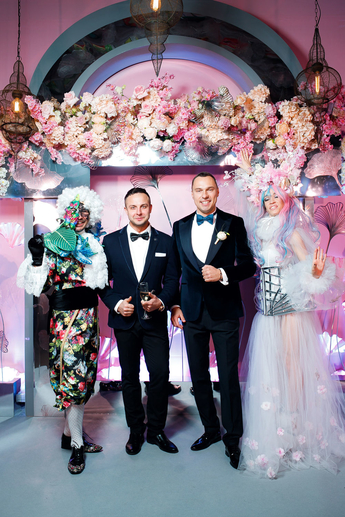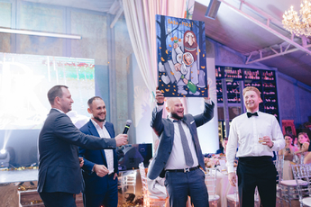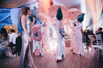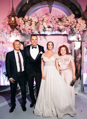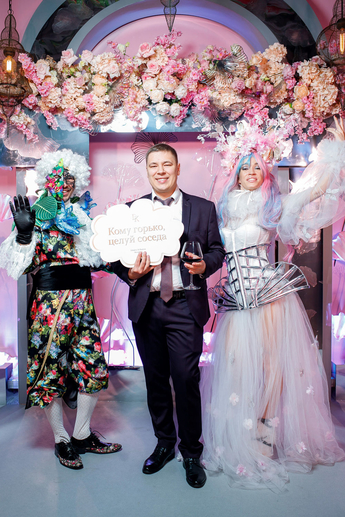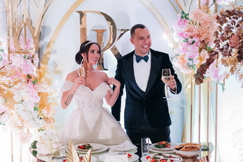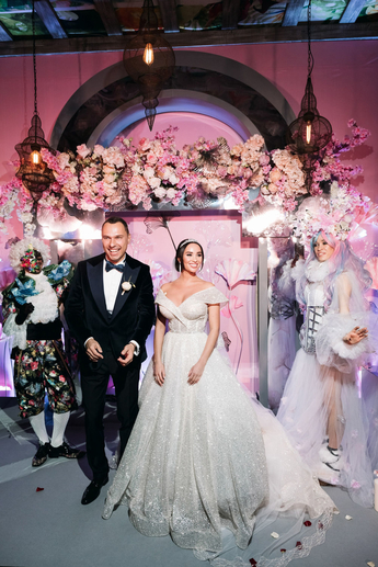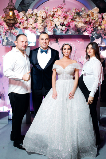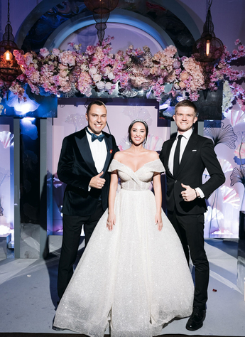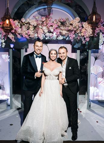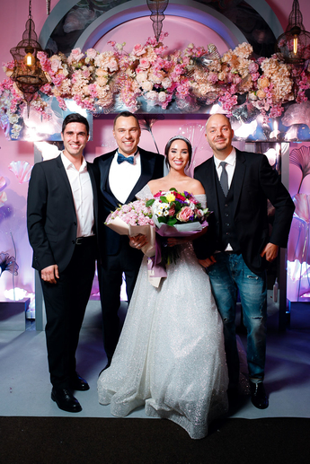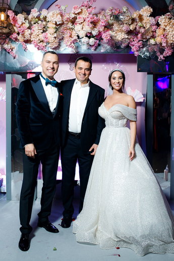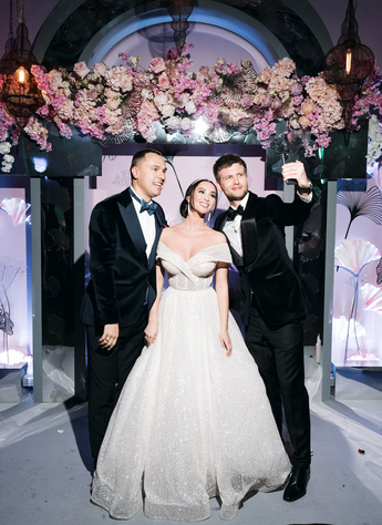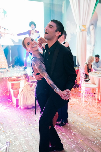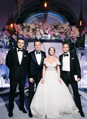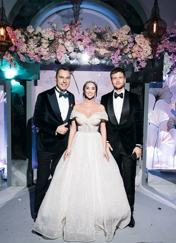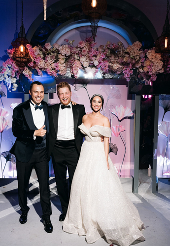 За организацию свадьбы отвечал большой друг и бессменный организатор ивентов VKLYBE.TV - Эдик Якут. По традиции свадьба превратилась в яркое шоу с сюрпризами и перфомансом: с самого начала программы, гости увидели эффектное появление молодых.
