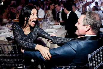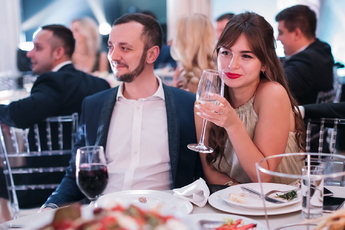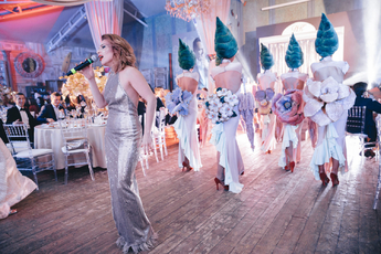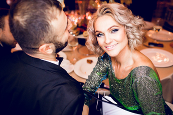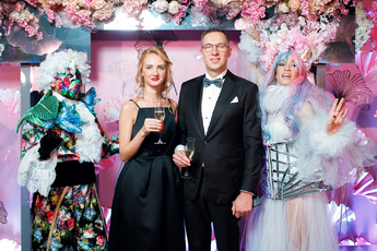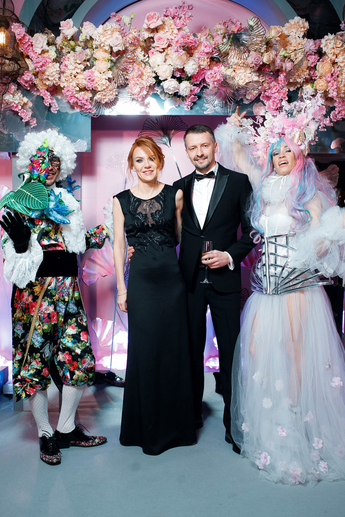 Декор двух залов с огромными фотографиями жениха и невесты в сказочном лесу с цветами и деревьями сыграл свою роль в создании атмосферы вечера. Воплотила все это в жизнь Инга Карачкова («Decoringa»).