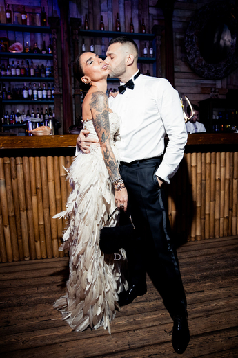 Церемония бракосочетания проходила в два этапа: сначала роспись в доме торжеств «Safisa» в кругу родных, а затем шумное празднование продолжилось в заведении давних друзей и партнеров в «Soho Country Club».