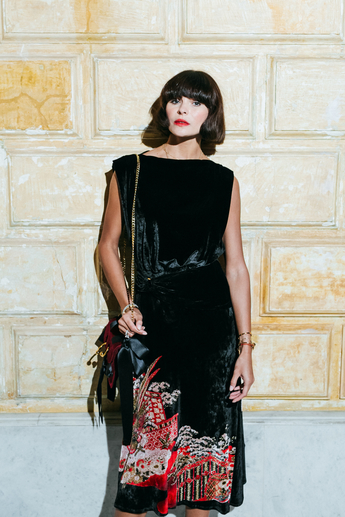 Вечер начался с визита Роберты Армани и Кейт Мосс в ЦУМ, где гостьи посетили поп-ап инсталляцию, посвященную выходу новой модели сумки La Prima. После общения с поклонниками бренда Роберта и Кейт отправились в Третьяковский проезд на коктейль в бутик Giorgio Armani с участием клиентов и светских лиц.