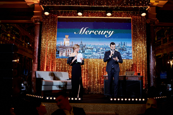 3 декабря в отеле Метрополь состоялся ужин ювелирной компании Mercury. Программа вечера была в формате передачи «Вечерний Ургант», но в этот вечер называлась «Вечерний Mercury».