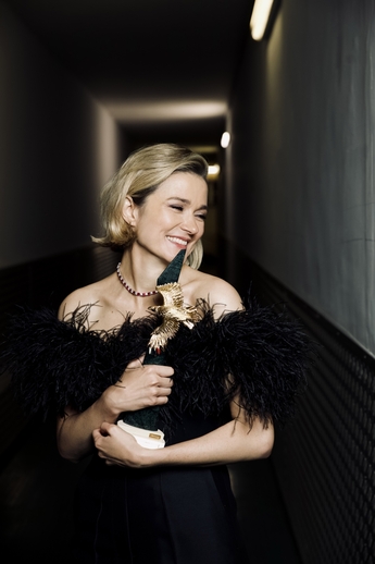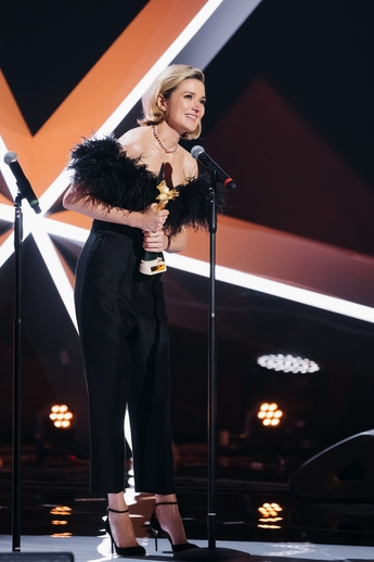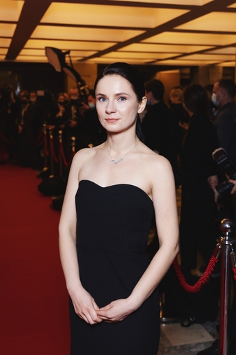 Ольга Озоллапиня, победительница в номинации “Лучшая женская роль в кино”, появилась на премии в кулоне Mercury из  коллекции Flower из белого золота с бриллиантами.