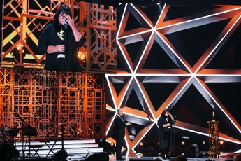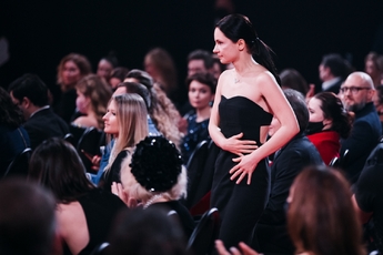 Полина Максимова выходила на сцену в серьгах и браслете Mercury из коллекции Classic из белого золота с бриллиантами.