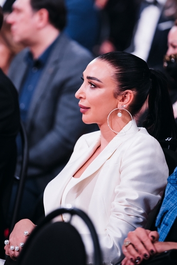 Анастасия Меськова была в серьгах и броши Mercury из белого золота с бриллиантами.