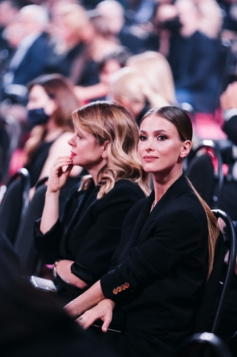 Для торжественной церемонии «Золотой Орел» Анна Михалкова и победительница в номинации “Лучшая женская роль на телевидении” выбрала серьги Mercury из коллекции Classic из белого и жёлтого золота с бриллиантами.