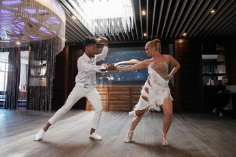 Призер многих российских и международных соревнований по бальным танцам и сальсе, участница бразильского карнавала, travel-блогер года и dance-блогер 2023 года Светлана Турилова и ее партнер по танцу Йоэл исполнили для гостей завораживающий и страстный танец.