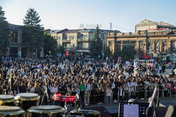 От имени народного движения» по-нашему " с праздничной сцены поздравительную речь произнес член движения, уроженец Гюмри Рубен Мхитарян.