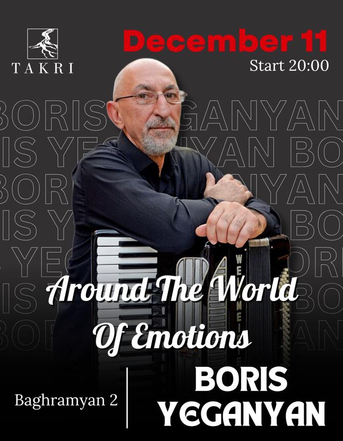 игре на аккордеоне большой мастер Борис Еганян, в своей неповторимой программой, Ереванский самые теплые и любимые места в одном.
